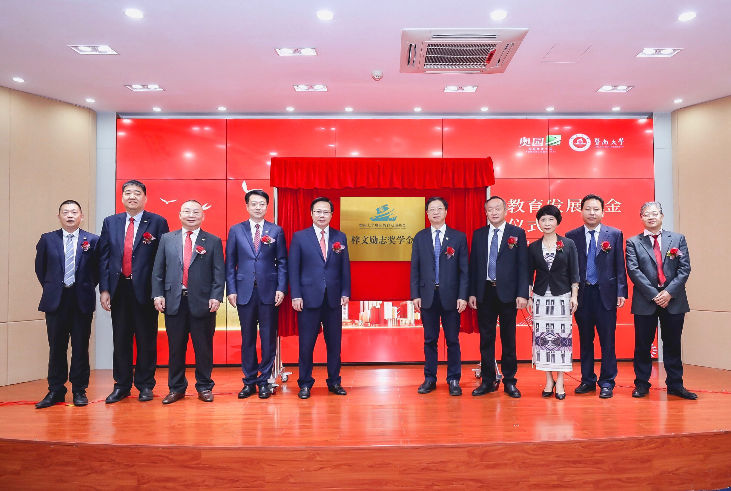 2020年,暨大奧園教育發展基金揭牌成立,設立梓文勵志獎學金,累計向暨大捐款超3200萬