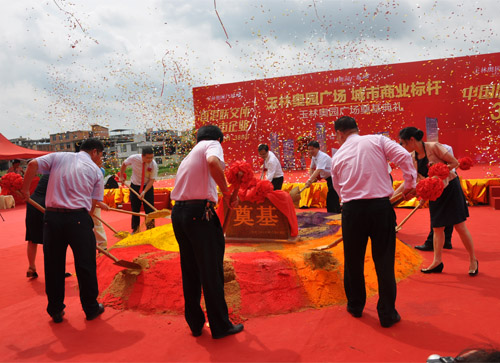 (2016年6月15日——玉林)6月15日 ,玉林商業(yè)地產(chǎn)發(fā)展史上迎來重要歷史時刻,玉林奧園廣場奠基典禮隆重舉行。香港上市名企、中國房企30強(qiáng)——中國奧園地產(chǎn)集團(tuán) (香港上市編號:3883),繼成功開發(fā)玉林首席大型國際居住社區(qū)——玉林奧園康城之后,又一全新商業(yè)綜合體力作——玉林奧園廣場榮耀登場,打造玉林城市商業(yè)標(biāo)桿和國際時尚生活體驗中心。玉林市玉東新區(qū)黨工委書記陳昭祺等玉東新區(qū)工委、管委主要領(lǐng)導(dǎo)及各政府部門領(lǐng)導(dǎo),奧園集團(tuán)黨委書記、總裁郭梓寧,奧園集團(tuán)總裁助理、奧園商業(yè)地產(chǎn)集團(tuán)運(yùn)營總裁張俊、奧園商業(yè)地產(chǎn)集團(tuán)副總裁麥偉等奧園集團(tuán)有關(guān)領(lǐng)導(dǎo),玉林各大銀行、媒體、商會及奧園合作伙伴、VIP客戶等400余人出席了典禮。奠基典禮由玉東新區(qū)工委委員、管委常務(wù)副主任呂敏主持。