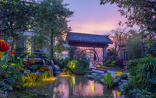 奧園文化旅游城韶關印象嶺南的園林設計運用疊山理水的古典造園手法,隨形就勢、削低墊高、引水成池、筑土為山,使得園林景致山美如畫、水秀如詩,不僅演繹出嶺南古典文化的神韻和中國古典山水之美,也體現了建筑的精致之美,從而造就了渾然天成、景觀綺麗的經典景觀之作。