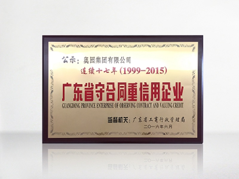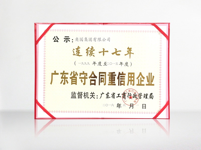 奧團(tuán)連續(xù)十七年榮獲“廣東省守合同重信用企業(yè)”,充分體現(xiàn)了“高效、誠信、責(zé)任”的企業(yè)精神,體現(xiàn)奧園重視合同管理和履行企業(yè)責(zé)任,不斷提升企業(yè)品牌知名度與美譽(yù)度,受到了政府及社會(huì)各界的一致好評和高度認(rèn)可。