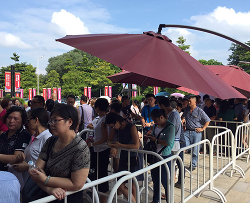 炎熱的天氣難擋客戶們的激情,10點(diǎn)左右,珠海奧園廣場(chǎng)營(yíng)銷中心門前人山人海,人群排在門口簽到,私家豪車不斷涌入,項(xiàng)目周邊交通幾近癱瘓,數(shù)百輛車堵在通往營(yíng)銷中心的路上,在平常車流甚少的時(shí)段制造了“車”滿為患的交通盛況。