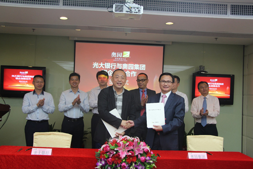 (2016年11月17日——廣州)光大銀行為加強與奧園集團(tuán)的銀企合作關(guān)系,經(jīng)總行審批同意給予奧園集團(tuán)200億元綜合授信額度,其中開發(fā)貸款等表內(nèi)資金100億元、城鎮(zhèn)化三舊改造基金100億元。