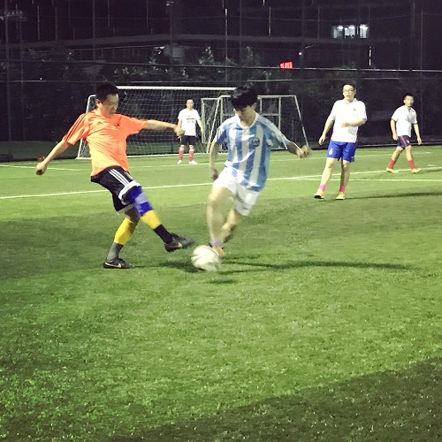 比賽之前,兩隊(duì)隊(duì)員都蓄勢(shì)待發(fā),內(nèi)心共同吶喊出必勝。加油鼓勁的觀眾聚集在賽場(chǎng)周圍翹首以待這場(chǎng)精彩的比賽。晚上7點(diǎn)整,隨著一聲哨響,奧園隊(duì)與奔馳隊(duì)展開了激烈的角逐。開場(chǎng)前半段,雙方都以防守為主,穩(wěn)中求進(jìn),不斷試探對(duì)方實(shí)力。奧園隊(duì)?wèi){借巧妙的攻略、熟練的腳法以及默契的配合多次突破對(duì)方的防線,上半場(chǎng)以2:1的比分領(lǐng)先奔馳隊(duì)。