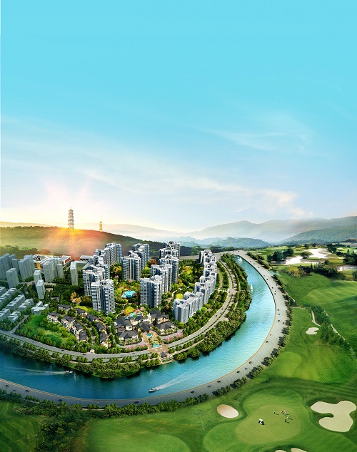 “一半蓮花山,一半高爾夫”,兩者“合二為一”,園景、酒店、河、高爾夫、山、蓮花塔、觀音像、天際線,蓮峰八境、盡收眼底;更好的詮釋了都市理想生態(tài)人居理念,完美呈現(xiàn)“生活就是高爾夫”的宜居典范。