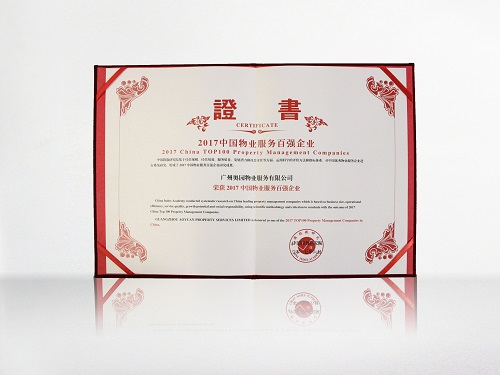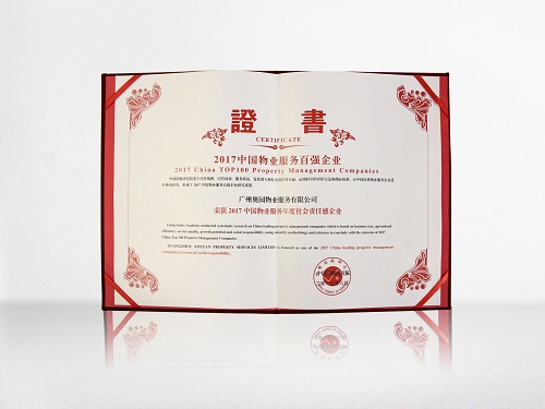 “2017中國物業(yè)服務百強企業(yè)”證書