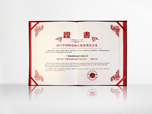 “2017中國特色物業(yè)服務領先企業(yè)——智愛生活”證書
