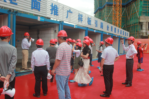 隨后,受邀業主、客戶在工程師及置業經理的帶領下進入工地,全程陪同為客戶詳細講解項目采用建筑材料、施工工序以及相關技術層面的問題。工程“樣板先行”,為了更直觀地展示建筑品質,此次活動特地開放了工法操作樣板區,這是工程施工的標準示范區,每一道工序都必須嚴格按照標準施工,定期組織施工方、監理及工程部門進行驗收,合格后方可進行下一道工序,確保施工質量符合要求。
