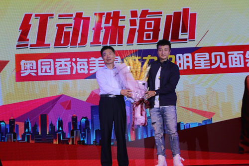 值得一提的是奧園斗門平沙片區總經理紀秀剛代表與會致辭,同時與方力申互換禮物。紀總贈與方力申榮譽業主牌匾,寓意共同開啟品質生活,而方力申也以“大麥花”回贈,祝愿項目大賣,為珠海呈現最高端的生活體驗。