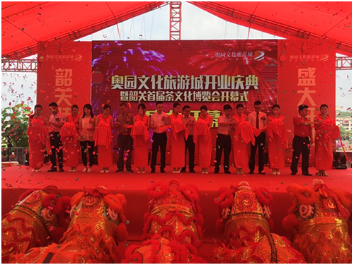 (2017年9月30日——韶關)9月30日上午,奧園文化旅游城•韶關印象嶺南開業慶典儀式暨韶關首屆茶文化博覽會開幕式隆重舉行。奧園韶關兼蘿崗商業管理公司總經理袁亮先生,韶關項目總經理申司昀先生、總經理助理陶鋒杰先生等出席了開業慶典儀式,共同見證項目韶關味道商業街璀璨綻放。