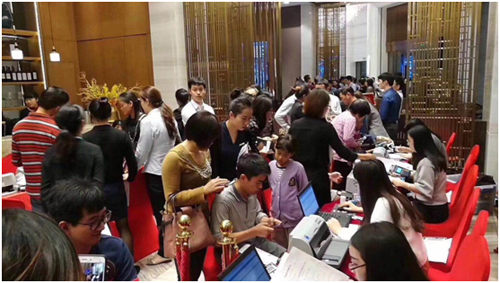 為了抓住這一個得來不易的機遇,最大化地將之轉化為佳績,半個多月來,項目全體工作人員按照嚴謹的分工,各司其職,通力合作,終于在11月17日16:00如愿取得7/9棟的產品預售證,并于當天在眾多購房者的翹首期待中,盛情開盤。現場再次延續首開強勢熱銷勢頭,吸引眾多忠實粉絲和投資客的搶購。本次開盤新品房源共228套,凌晨1:00左右取得了全部售罄的成果。