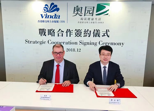 (2018年12月10日– 香港) 中國奧園集團股份有限公司(“奧園”,股票代號:3883)欣然宣布與維達國際控股有限公司(下稱維達集團;港交所股份代號:3331)在香港簽署戰略合作協議。奧園董事局主席郭梓文、副總裁郭士國、文旅集團總裁程耀、奧買家集團總裁劉麗萍、維達集團董事會主席李朝旺、行政總裁麥燾等雙方高級管理層共同出席,見證雙方戰略合作的重要里程。雙方通過此次戰略合作開啟未來在城市居民健康生活服務、長者社區服務的健康管理、電商貿易和文旅產業服務等領域的長期戰略合作,助力城市居民的美好健康生活。