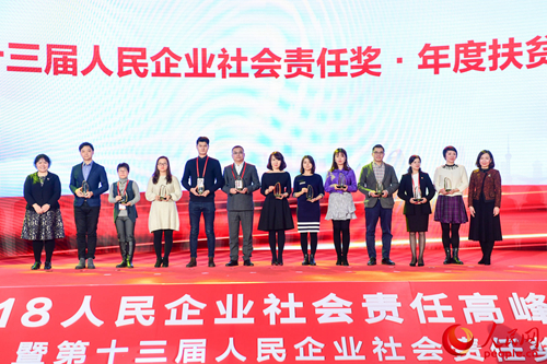 12月17日,由人民網、人民日報社、全國工商聯、中華慈善總會等主辦的2018人民企業社會責任高峰論壇在人民日報社報告廳隆重舉行。奧園集團榮獲第十三屆人民企業社會責任獎“年度扶貧獎”!全國政協副主席李金華、人民日報社副總編輯張首映、全國工商聯專職副主席謝經榮等領導做論壇致辭,奧園集團黨委副書記、奧園慈善基金會理事長林莉出席活動和頒獎儀式,并在中央財經大學黨委書記何秀超主持的“改革開放與企業社會責任”論壇上作嘉賓發言,分享奧園集團黨建及精準扶貧工作,獲得與會領導、嘉賓一致好評。