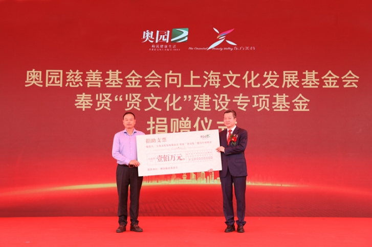 奧園慈善基金會向上海文化發(fā)展基金會奉賢“賢文化”建設(shè)專項(xiàng)基金捐贈儀式