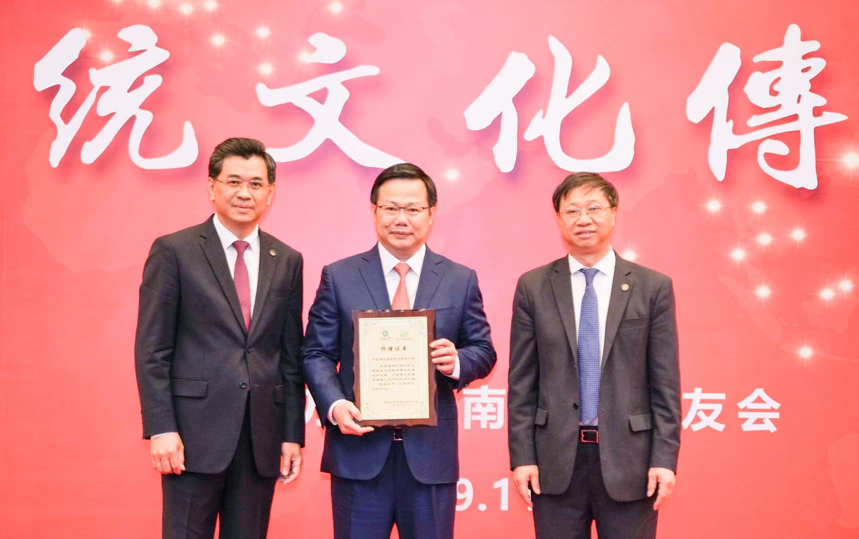 中國奧園集團向暨南大學捐贈2000萬元(從左至右:暨南大學黨委書記林如鵬,中國奧園集團董事會主席郭梓文,暨南大學校長宋獻中)