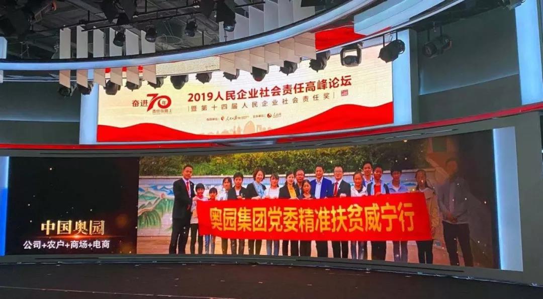 12月27日,由人民網、人民日報社主辦的2019人民企業社會責任高峰論壇在人民日報社報告廳隆重舉行,中國奧園榮獲第十四屆人民企業社會責任獎“年度扶貧獎”。