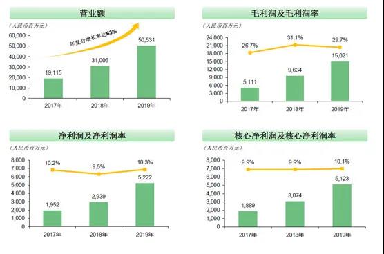 盡管并購經驗豐富,但中國奧園的近些年的業績表現,本質上仍然是聚焦主業獲得的內生性增長,而不是像很多房企一樣盲目跨界。從凈利潤率、毛利潤率來看,中國奧園近幾年的業績非常穩定,毛利潤率穩定在30%上下,凈利潤率和核心凈利潤率也均穩定在10%上下。