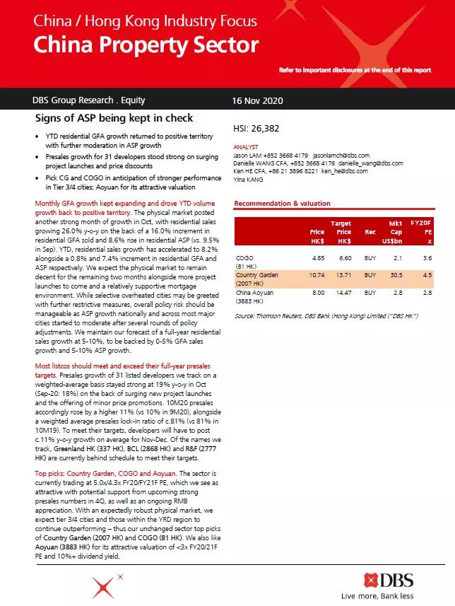 富瑞金融、星展銀行、銀河-聯昌證券、建銀國際:2020年全年合同銷售達標在望