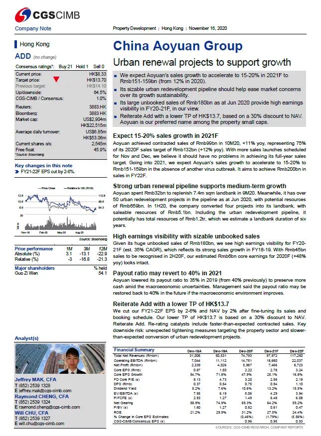 于2020年6月底,奧園擁有逾50個不同階段的城市更新項目,預計額外貢獻可售資源約人民幣6,587億元。銀河-聯昌證券等認為,奧園舊改資源豐富,隨著轉化加速,將為中長期業績增長提供動力。