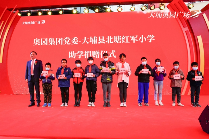 大埔縣委書記朱漢東、縣長熊鋒松、縣人大常委會主任黃建庭,奧園集團黨委書記、總裁郭梓寧,奧園商業(yè)地產(chǎn)集團副總裁尹立鵬,奧園健康生活集團常務(wù)副總裁雷易群等領(lǐng)導(dǎo)嘉賓共同出席典禮。慶典上,奧園集團黨委給結(jié)對幫扶的大埔縣紅軍小學(xué)捐贈了一批教學(xué)設(shè)備,并為貧困生頒發(fā)了助學(xué)金。