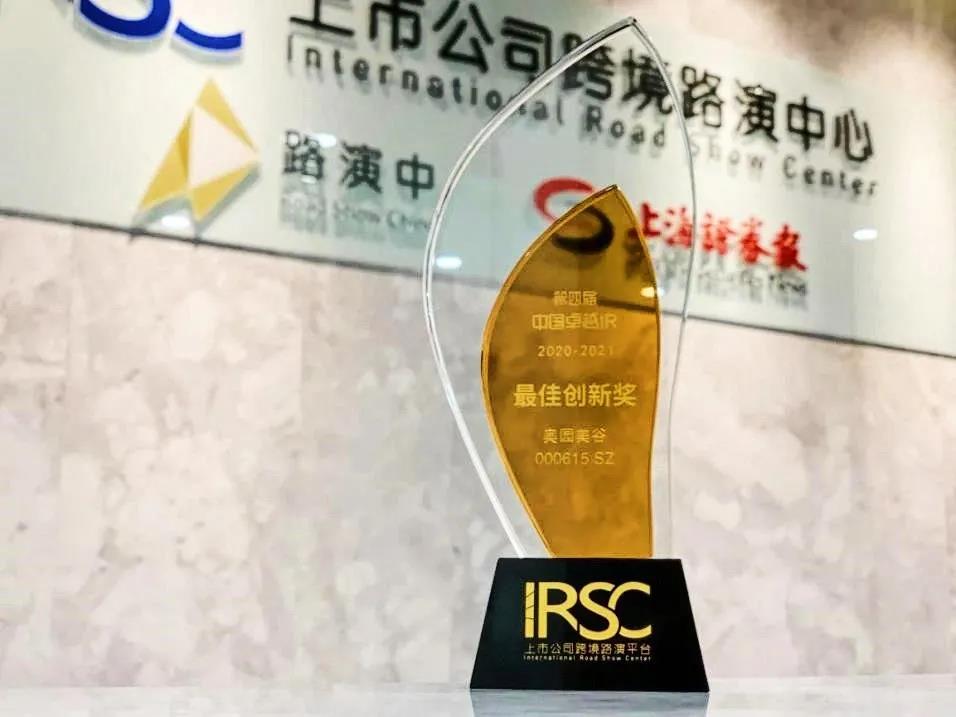 1月20日,由Roadshow China路演中、卓越IR主辦的“2021上市公司投資者關(guān)系創(chuàng)新峰會暨第四屆卓越IR頒獎盛典”在深圳舉行。中國奧園(3883.HK)、奧園美谷(000615.SZ)分別斬獲最佳ESG(環(huán)境、社會及管治)獎、最佳信披獎以及最佳創(chuàng)新獎。