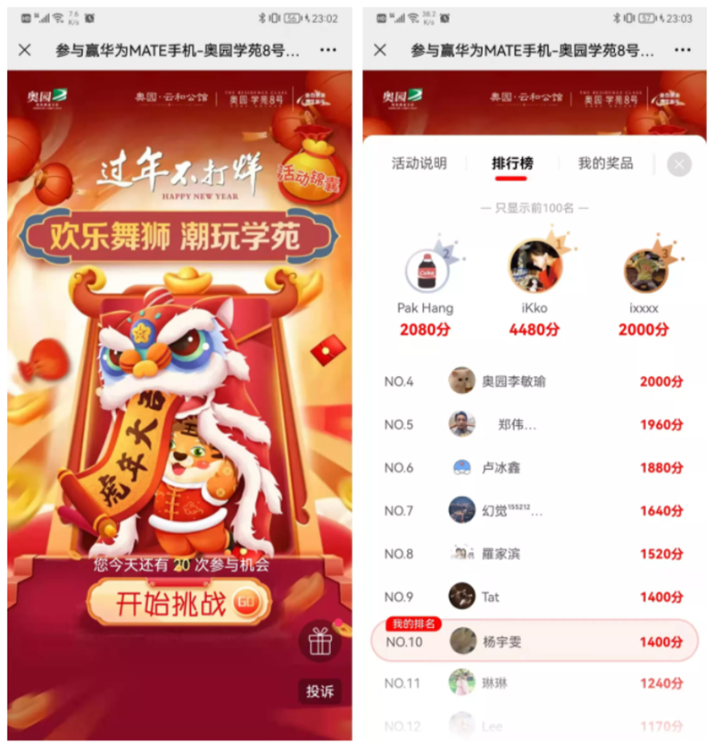 其中,南寧區(qū)域返鄉(xiāng)置業(yè)潮火熱上演,浦北奧園廣場(chǎng)現(xiàn)場(chǎng)設(shè)置紅包大派送、刮刮樂、圈圈有禮、趣味宮廷投壺、新年幸運(yùn)簽、手作DIY等游園活動(dòng),吸引到訪近千人,單日最高助力轉(zhuǎn)化7套。
