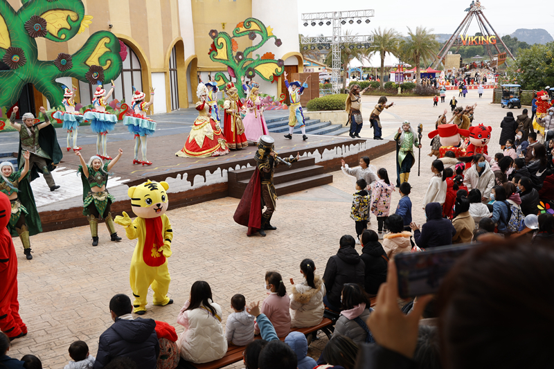 為迎接虎年新春到來,奧園英德巧克力王國(guó)精心推出“巧克力國(guó)王節(jié)”,多味市集、民俗攤位、互動(dòng)演藝、趣味巡園等驚喜活動(dòng)層出不窮。景區(qū)以專業(yè)的推廣、創(chuàng)新的產(chǎn)品、優(yōu)惠的價(jià)格和濃厚的節(jié)日氛圍,吸引游客“花式”游玩,讓游客沉浸式感受濃濃的“廣式年味”。大年初一,《女王的盛宴》重磅上演,當(dāng)天便得到游客們的高度贊賞,好評(píng)不斷。