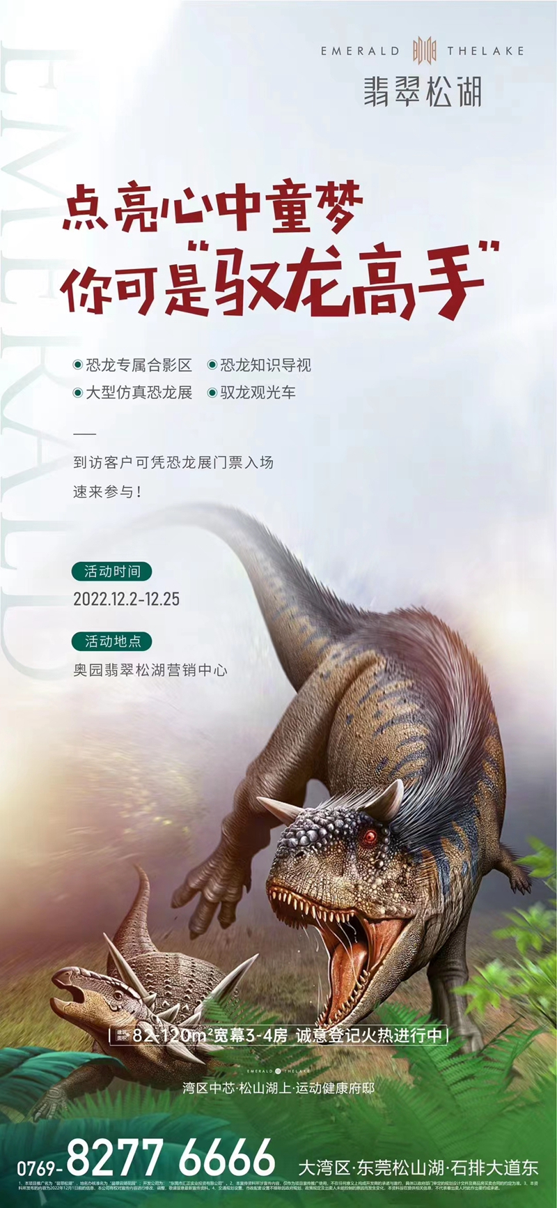 目前,翡翠松湖項目正誠意登記中。12月2日至25日到訪,還可以現場參觀大型“奇幻恐龍展,探秘侏羅紀”展覽。期間,現場還會設置專屬科普知識,更有激萌恐龍拍照打卡點,體驗與龍仔一起破殼而出,期待與您共鑒神秘奇遇。