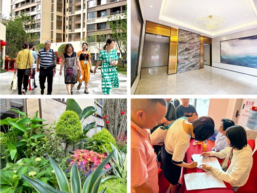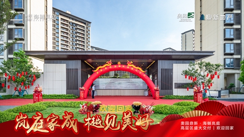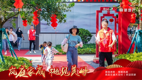 交付現場,喜慶的紅毯、暖心的標語、貼心的歸家動線、專業的陪伴式驗房、有序的簽約現場、妙趣盎然的園林實景和美好愜意的明亮新家,為業主匠心構筑回家的歸屬感和幸福感。
