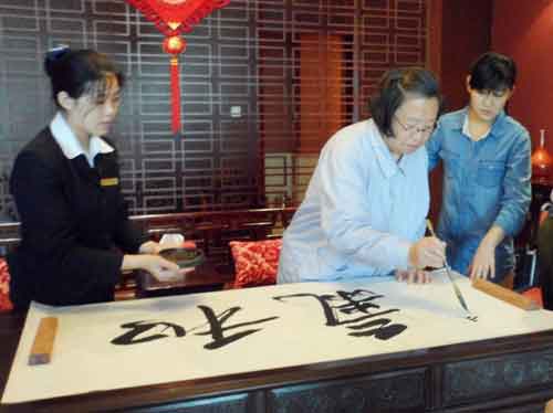 李訥大姐一行在奧園養生酒店居住3天2晚,奧園養生酒店高雅的養生環境、細致入微的服務,贏得了李訥大姐的高度贊賞,她多次對酒店的服務及餐飲出品贊不絕口,并親自揮墨為奧園養生酒店寫下“和氣”二字,對奧園養生酒店所打造的“高品質的養生環境、高水平的養生保健項目、高度人性化的服務體系、高度現代化的管理平臺、高雅和諧的高端人際圈”的理念深為贊許。