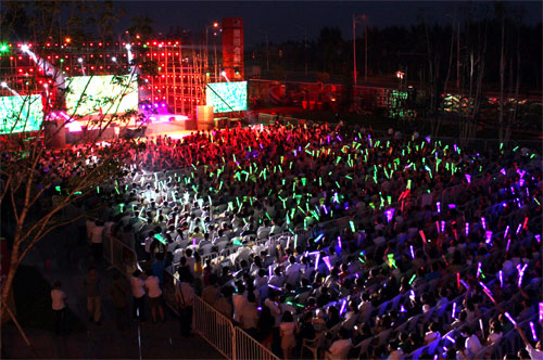 當晚19:00,在觀眾激情洋溢的歡呼尖叫與掌聲中,“動力火車”登臺獻唱。現場演唱了《背叛情歌》、《忠孝東路走九邊》、《那就這樣吧》、《當》等經典曲目。顏志琳和尤秋興這對來自臺灣樂壇的“動力火車”組合,作為實力唱將和青春偶像,以音樂給人以正面的鼓舞力量,以超人氣魅力、一處一處的現場演唱、一句一句的賣力吶喊風靡亞洲樂壇,創造了一種真誠且充滿生命力的音樂原型。一首首帶著濃濃回憶的歌曲,將活動現場氣氛推向了高潮,掌聲、歡呼聲、尖叫聲、音樂聲混成一片,與現場觀眾的熱情一起激起萬千美好,掀起一片片高潮。21:00,在《我相信》激情四射的音樂聲中,這場大型獻唱晚會圓滿結束。