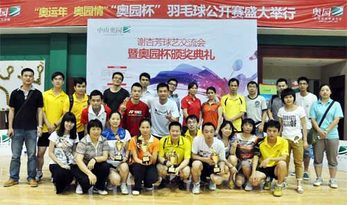 (2012年6月5日——中山)適逢四年一度的奧運(yùn)年,奧園集團(tuán)在全國多座城市同時(shí)開展“奧運(yùn)年·奧園情”系列活動(dòng),倡導(dǎo)運(yùn)動(dòng)健康精神,傳揚(yáng)低碳健康生活宣言!作為“奧運(yùn)年·奧園情”的最后一站,6月2日中山奧園舉辦了“奧園杯”羽毛球公開賽頒獎(jiǎng)典禮暨“奧園·星辰”新品發(fā)布會(huì)。世界冠軍謝杏芳親臨現(xiàn)場(chǎng)為獲勝者頒獎(jiǎng),并教授羽毛球的經(jīng)典技戰(zhàn)術(shù)。廣大奧園業(yè)主與世界冠軍“零”距離接觸,為“奧運(yùn)年·奧園情”又添上濃墨重彩的一筆。
