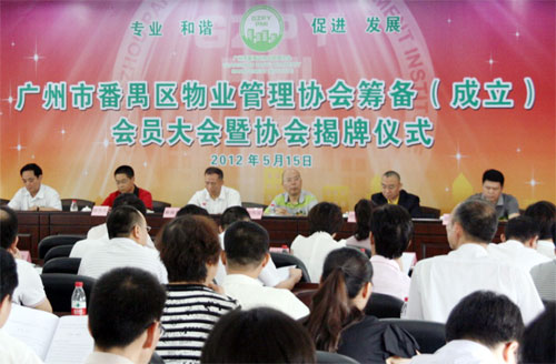 (2012年5月15日——廣州)廣州市番禺區物業管理協會成立大會暨揭牌儀式在番禺區國土房管局舉行,奧園物業作為番禺區物管協會第一屆常務理事會員候選單位參加了此次會議。