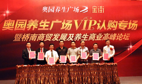 奧園養(yǎng)生廣場·金街是依托于大型城市養(yǎng)生綜合體的稀缺街鋪,統(tǒng)一規(guī)劃健康養(yǎng)生業(yè)態(tài),打造高端專業(yè)的國際健康養(yǎng)生步行街。目前,金街已吸引了中華城市養(yǎng)生中心、華潤萬家等眾多品牌商家,寶芝林、寶貝新村(母嬰連鎖百貨)、好參來、建設(shè)銀行、美國本草、韓國高麗參、北京同仁堂等知名企業(yè)正在積極洽談。本次論壇上,奧園養(yǎng)生廣場與中華城市養(yǎng)生中心、奧園健康管理中心、華潤萬家、瑞士瑪麗婭菲女子SPA機構(gòu)、愛嬰寶貝城和南國水鄉(xiāng)生態(tài)美食城六大主力商家簽訂了意向進駐協(xié)議。