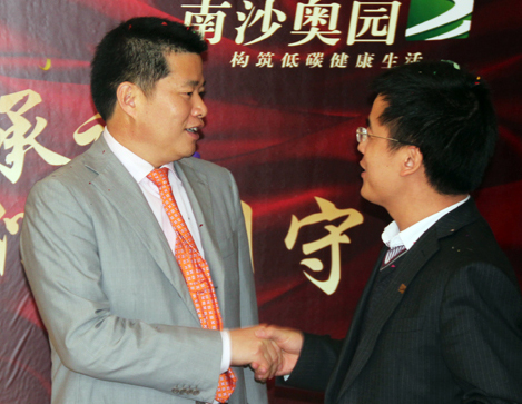 (2012年03月15日——廣州)3月15日是國際消費者權益日,兩位客人來到南沙奧園銷售中心,他們是南沙奧園五區某棟別墅業主池先生夫婦,此行特意向奧園南沙片區公司贈送一面印有“守合同,客戶至上;重信用,用心服務”的錦旗,借此3·15之際,以表達他們對奧園南沙片區公司工作的肯定和謝意。