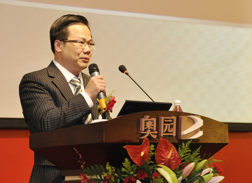 會上,集團執行董事兼營運總裁楊忠先生首先總結了2011年度集團各項工作成果。2011年對奧園來說是不平凡的一年,在董事局主席郭梓文先生帶領下,集團和各項目公司統一思想,積極應對,在激烈的市場競爭中抓住機會,全力拼搏,簽約銷售額和確認收入額均超2010年。土地儲備量也完成既定目標,集團在均衡可持續發展的前進道路上又邁出了堅實的一步。2012年,集團將繼續秉承“穩健快速發展”的策略,始終堅持“以目標結果為導向”,全員、全過程、全周期加強管理工作。
