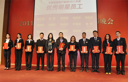 隨后,集團董事局副主席、行政總裁郭梓寧先生致辭。郭總裁仔細闡述了集團2011年的工作情況,并生動講述了一些先進工作者的優秀事跡。本次總結會上還表彰了2011年度表現突出的團隊和個人。其中集團投資發展中心被評為優秀管理團隊,南沙片區被評為優秀經營團隊,戴進群等10人榮獲“優秀管理人員”稱號,李世泓等30人榮獲“優秀明星員工”稱號,夏成俊等6人榮獲“優秀通訊員”稱號,同時會上還評出2011年奧園集團十大新聞。另外,總結會還表彰了2011年四季度營銷之星。作為非公企業黨建排頭兵,集團頒發了2011年度先進黨支部、優秀黨務工作者、優秀共產黨員等獎項。