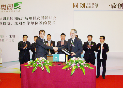 (2011年1月20日——沈陽)被譽為東北亞商業航母、沈陽規模最大的奧園會展廣場正式起航,沈陽奧園會展廣場項目發展研討會暨招商、規劃合作單位簽約儀式在沈陽皇朝萬鑫酒店舉辦。沈陽市副市長祁鳴、副秘書長劉祥、市服務業委員會主任張士勇、蘇家屯區區長李宏德、蘇家屯區政府區委常委、副區長候曉東等區政府及各職能單位領導,中國奧園地產集團執行董事、副總裁、沈陽公司董事長胡大為等奧園高層、盈石資產管理公司副董事長張石麟、執行董事周亮、澳大利亞BUCHAN集團設計聯盟董事DavidMacleod、嘉沃投資副總裁吳亮、藍色創意中國品牌顧問公司CEO柳軍等出席了活動。