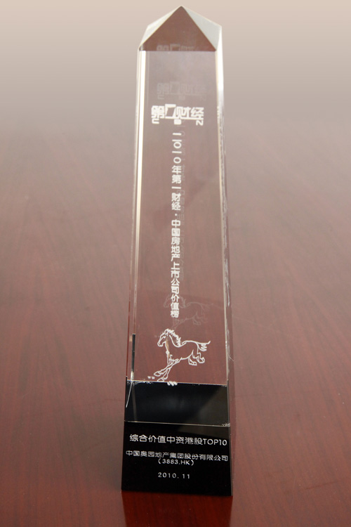 中國奧園地產集團(香港股份代號:3883)在由第一財經日報社、第一財經研究院共同主辦的「2010第一財經·中國房地產上市公司價值榜」評選活動中,榮獲「最具成長價值公司」和「中國房地產上市公司綜合價值中資港股TOP10」兩項榮譽大獎,奧園的出色表現獲得這獎項實至名歸。