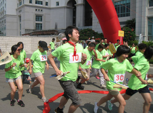 伴隨著雄渾有力的國歌,“奧”運會舉行了簡樸而莊重的升旗儀式和開幕儀式。隨后,發令槍一響,“奧”運會的首場賽事——南沙奧園養生長跑比賽開始,參賽選手在奧園業主啦啦隊的吶喊助威聲中,從南沙奧園大門口出發,沿著碧波蕩漾的金奧湖畔,奔跑在長達2000米的私家林蔭大道上。兩旁大樹參天,為運動健兒遮陰蔽日;林中鳥語花香,為運動健兒鼓勁加油;山間清風陣陣,為運動健兒提神送爽。比賽最后決出了男、女組前三名優勝者,他們獲得了由奧園集團送出的一份精美獎品。