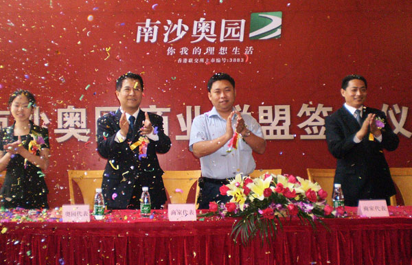 (2009年5月1日——廣州)5月1日上午,“南沙奧園商業聯盟合作簽約啟動儀式”在南沙奧園銷售大廳隆重舉行。此次活動是繼4月25日廣州中醫藥大學養生基地落戶南沙奧園之后,南沙奧園強化配套、服務業主的又一重大舉措。