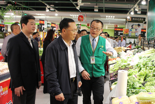 盧一先書記在華潤萬家超市詳細了解節日市場