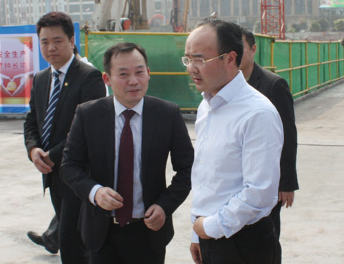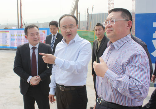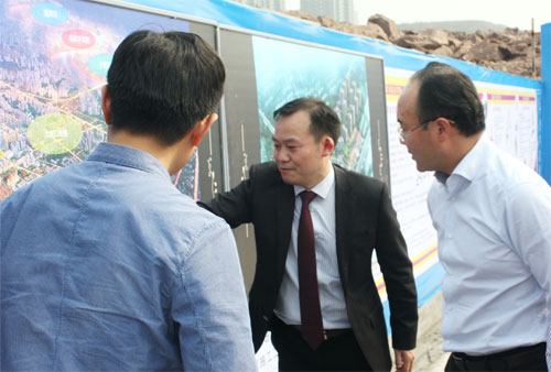 (2013年3月11日——重慶)重慶市九龍坡區石繼東區長、何勇副區長、周進副區長、九龍坡區建委代江副主任、談臨凌副主任等領導一行蒞臨重慶奧園·國際城施工現場調研指導。奧園集團總裁助理兼重慶片區總經理肖毅先生向石區長一行匯報了項目方案及開發計劃,重慶片區經營班子接待了石區長等領導一行。