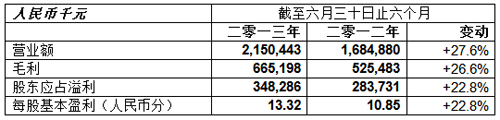 錄得營業額及股東應占溢利人民幣21.5億元及人民幣3.5億元,分別增長27.6%及22.8%