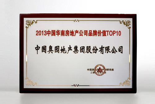 奧園品牌價值倍增,榮膺“2013中國華南房地產公司品牌價值TOP10”