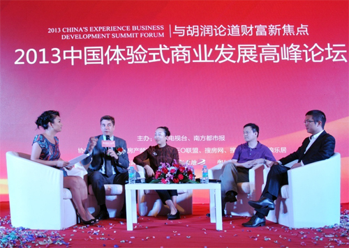 (2013年9月28日——廣州)由廣東電視臺、南方都市報主辦、奧園城市天地具體承辦的“與胡潤論道財富新焦點——2013中國體驗式商業發展高峰論壇”在廣州奧園高爾夫酒店隆重舉行。胡潤百富創始人胡潤先生、廣州社科院科研處處長彭澎先生、贏盛中國商用地產集團策略顧問專家張斌先生作為論壇主講嘉賓出席活動并做了主題演講,奧園集團副總裁王曙煜女士和集團總裁助理顧海濤先生,以及眾多媒體、商家代表、投資者、珠三角企業和商會等約500余人參加了本次論壇活動。