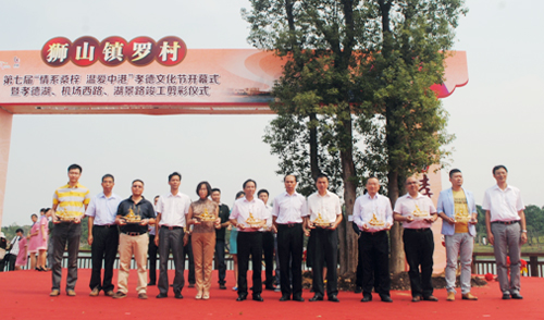 (2013年10月13日——佛山)由奧園·公園一號(hào)協(xié)辦的佛山獅山鎮(zhèn)羅村第七屆“情系桑梓溫愛中港”孝德文化節(jié)開幕式暨孝德湖、機(jī)場(chǎng)西路、湖景路竣工剪彩儀式在孝德湖畔隆重舉行。