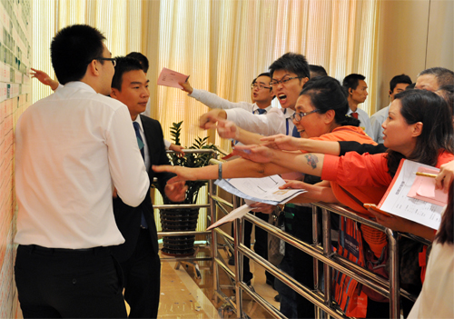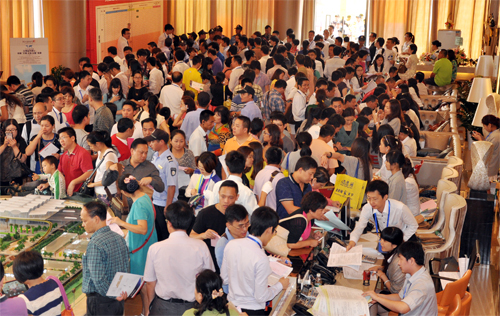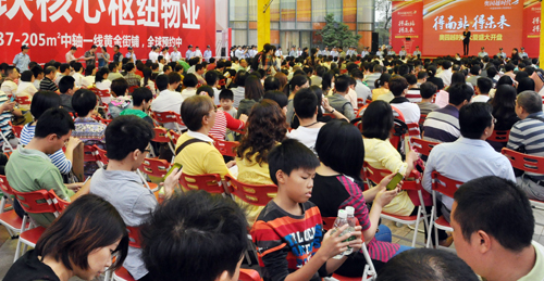 當(dāng)天早上7點(diǎn),南站地區(qū)車流猶如長龍,項(xiàng)目周邊道路排滿私家車等候進(jìn)入臨時(shí)停車場。8點(diǎn)鐘,距離開盤還有一個(gè)小時(shí),現(xiàn)場等候區(qū)早已人山人海,上千名客戶手里緊緊地拿著搖簽號。經(jīng)統(tǒng)計(jì),當(dāng)天近兩千名客戶到場,掀起了一場樞紐商業(yè)物業(yè)搶奪大戰(zhàn)。