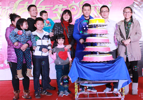 香港歌手梁漢文與12月生日的壽星共同參加奧園廣場周年慶生日派對