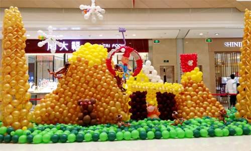 除了飄雪,作為奧園廣場圣誕特別活動的另一重要環節——“甜蜜世界”也廣受消費者歡迎。奧園廣場的甜蜜使者——氣球公主們身著漂亮的氣球裙子,穿梭在由十萬個氣球組成的“甜蜜世界”里,所到之處都吸引著眾人圍觀和爭相合影。色彩繽紛的各式氣球營造出各種豐富的場景:雪人林立的氣球陣、極地嚴寒的南極冰川世界、繽紛靚麗的雪屋、穿過藍天白云從天而降的圣誕老人、駕著噴氣飛機穿梭在森林密布中的飛行員們,構成奧園廣場一道獨特的景觀。