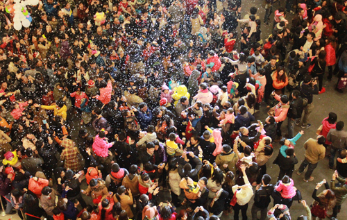 活動從晚7點半進行到9點,在熱鬧的桑巴舞、踢踏舞等精彩節目的帶動下,圍觀群眾的熱情也越來越高,大雪陸續飄了四次,每一次都引來群眾的熱情尖叫和歡呼聲,情侶們忙著自拍、發微博、發微信。